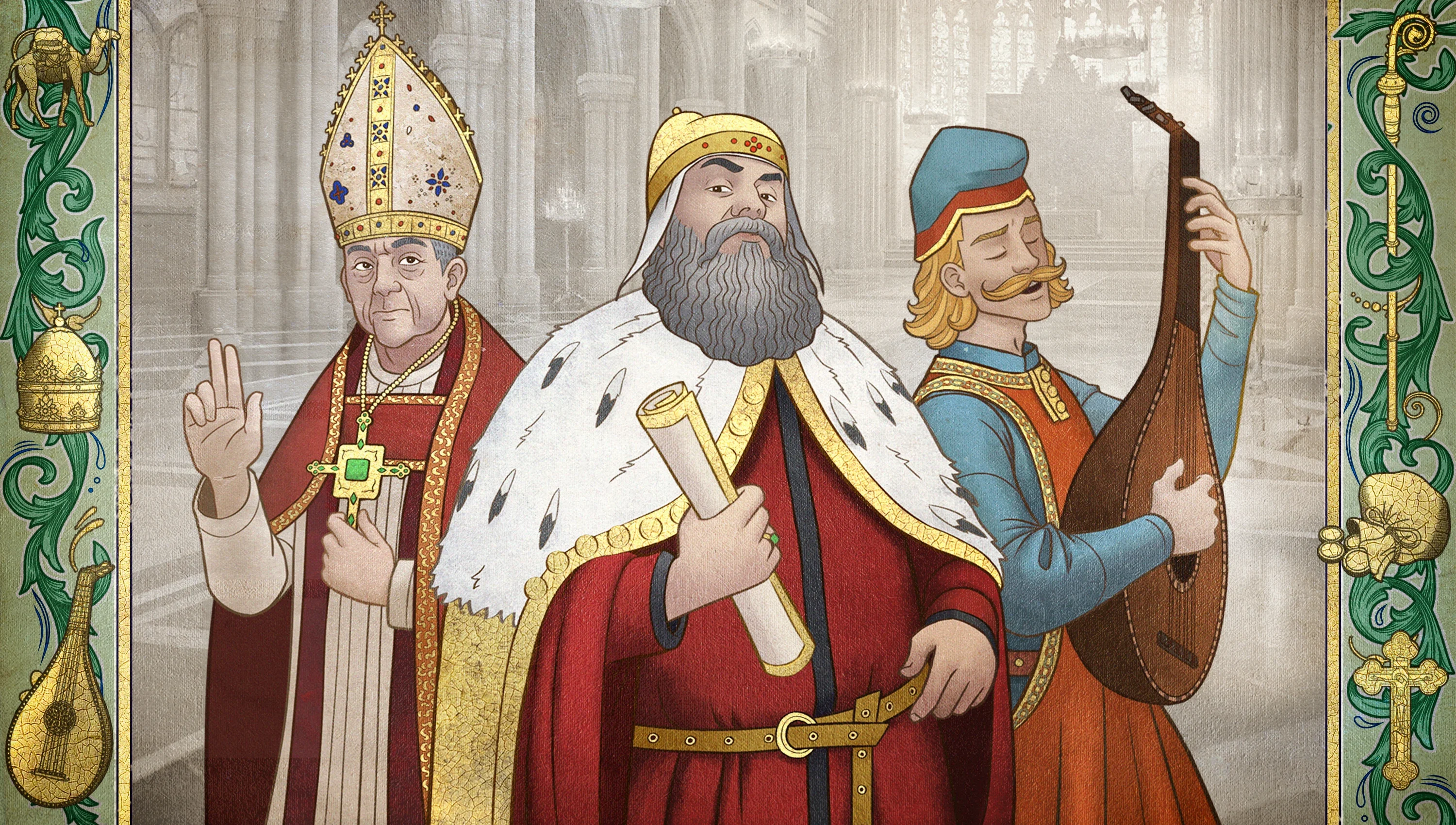 Wrestle with sin as your rulers try to live up to the tenets of their faith as you tangle with church authorities who have power on earth, as well as heaven. Instigate or settle religious debates, negotiate the limits of crown and Papal authority, and ponder the afterlife.